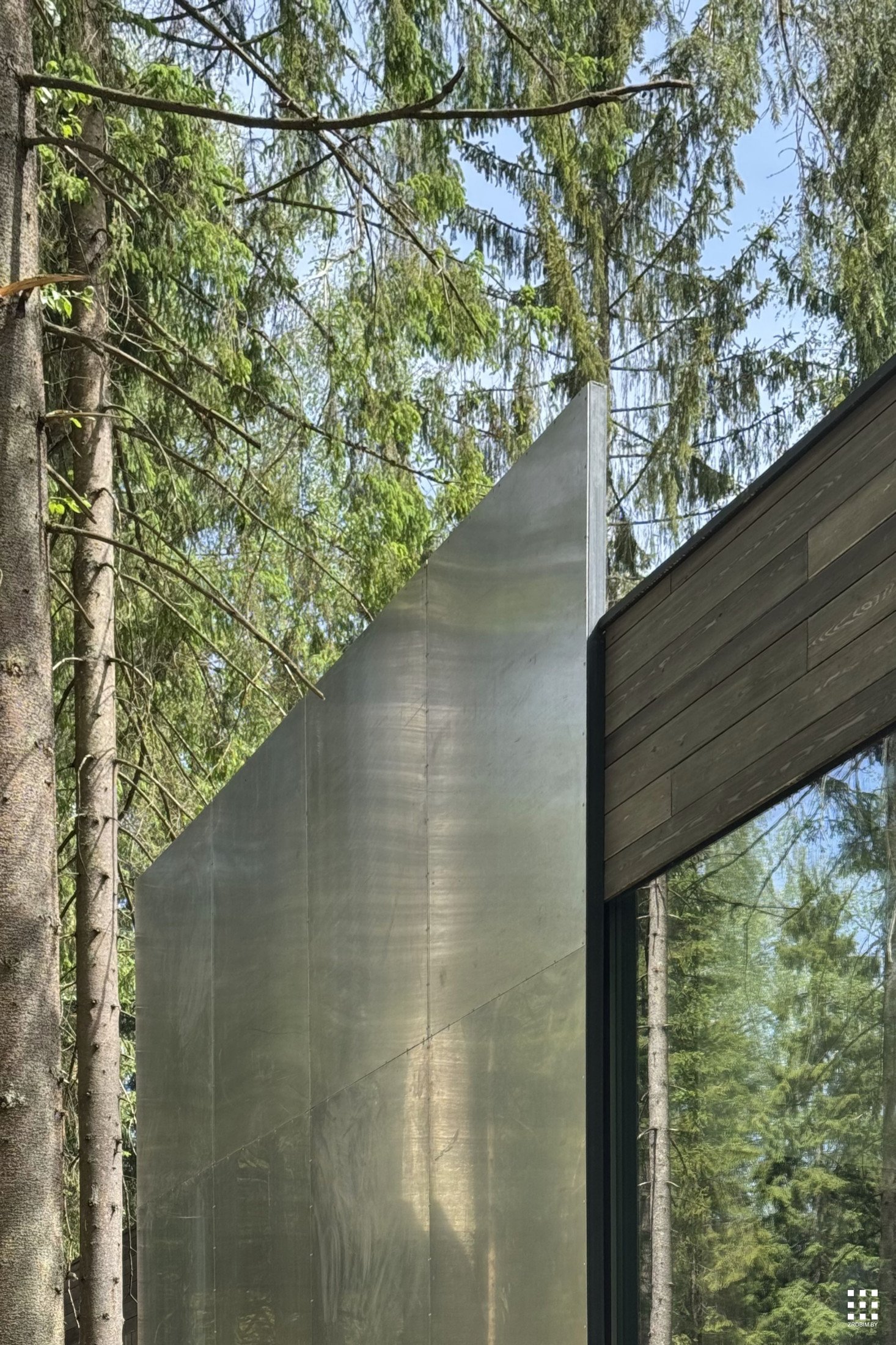 Взяв за основу проекты всего двух домов с непохожей конфигурацией, мы разработали уникальный дизайн-код домов из модулей. Для фасадов есть 2 цвета деревянных реек и 4 цвета металла, которые отлично сочетаются между собой. Такая концепция позволила создать поселок из похожих и взаимосвязанных между собой, но при этом уникальных домов.